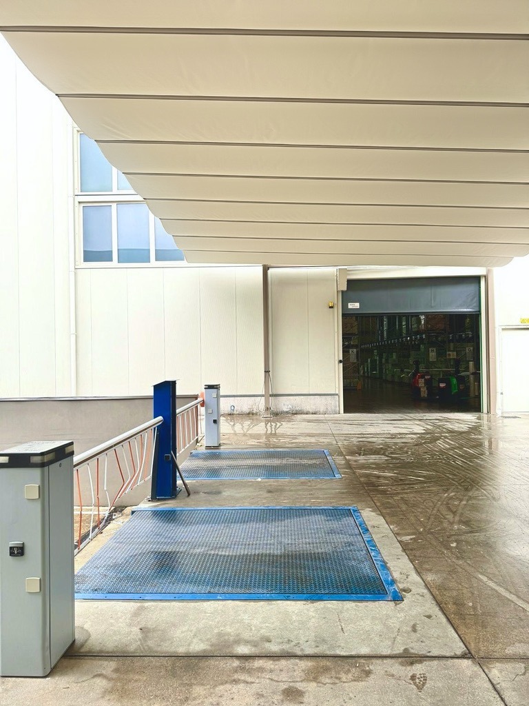 La necessità principale era, quindi, quella di collegare i tre stabilimenti senza creare nuova superficie coperta, garantendo al contempo una copertura continua che permettesse il passaggio di persone, mezzi e merci in totale sicurezza. Il collegamento doveva proteggere merci e prodotti delicati dalle intemperie, consentire il transito quotidiano e mantenere la piena operatività delle aree di carico e scarico.