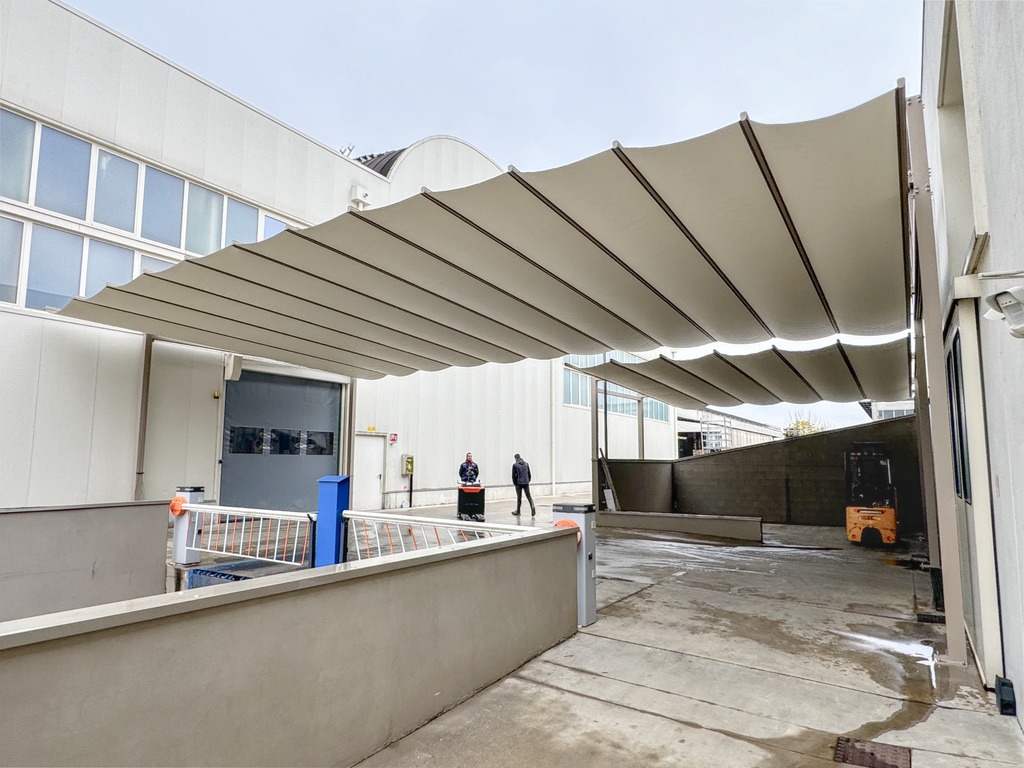 Per rispondere alle richieste dell’azienda, abbiamo progettato e realizzato due Vele Scorrevoli, scelte per la loro scorrevolezza, amovibilità e autoportanza strutturale. Le Vele non sono state ancorate agli edifici esistenti e non influiscono sulla loro statica, risultando totalmente indipendenti anche in caso di eventi straordinari.